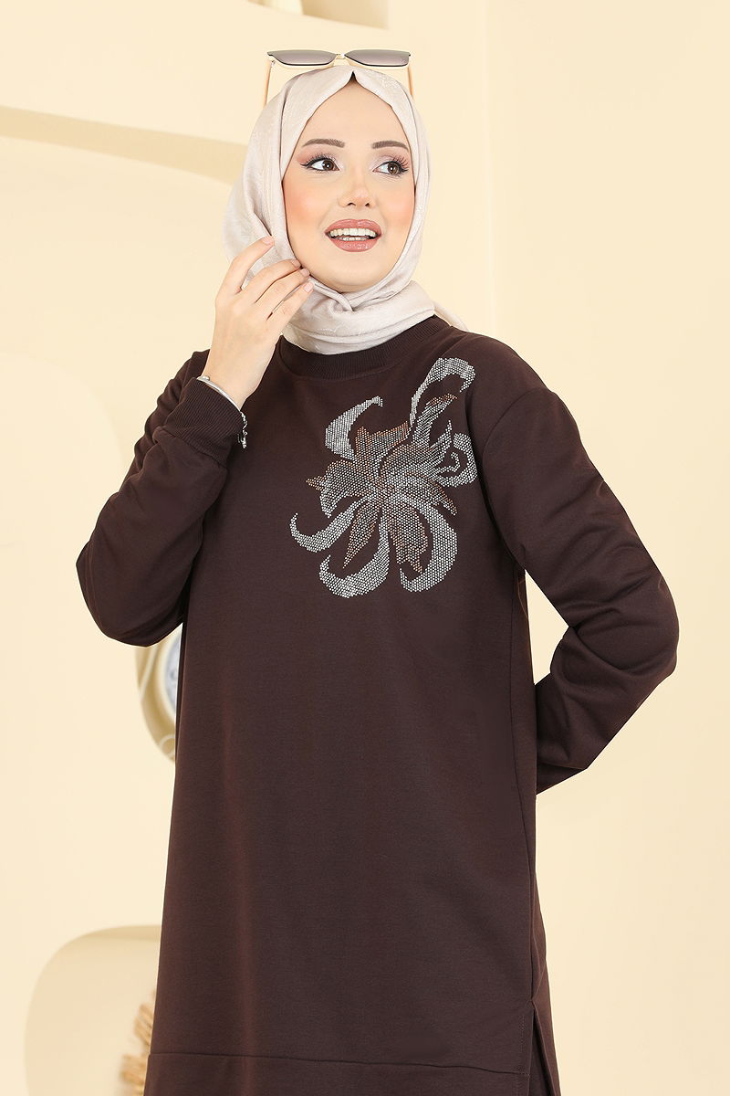 Product Feature : It is a new season hijab fashion product. The product has a Cycling collar. The tunic has a side slash.. Unlined. The stones are glued. The waist of the trousers is elastic. There may be a tonal difference in the product due to concept photo shoots.