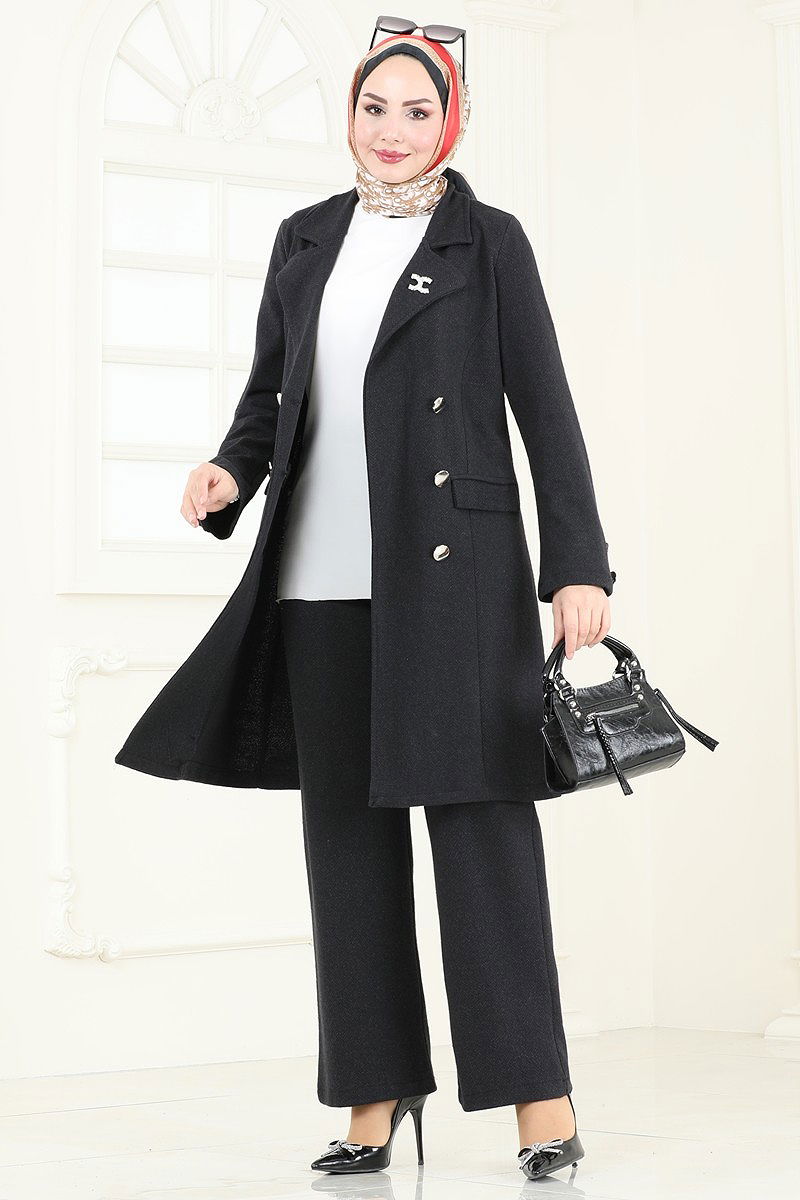 المنتج لديه ياقة مفتوحة. المنتج به أزرار من الأمام. غير مبطنة. الحزام متضمن، ،يمكن استخدامها حسب الرغبة البلوزة غير متضمنة. صُنعت عينة من المجموعة مع البلوزة لإظهار الاستخدام المقصود للمنتج. تفاصيل الجيب من الملحقات. خصر البنطال مرن. قد يكون هناك اختلاف في الدرجة اللونية في المنتج بسبب التقاط الصور الفوتوغرافية.