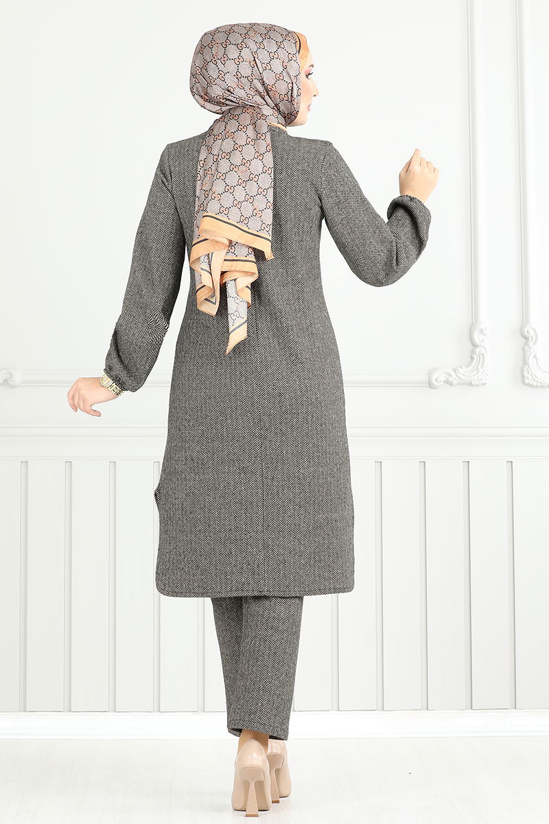 يتميز بسحّاب للإغلاق بسحاب خلفي وزر. المنتج لديه ياقة بيضوية. البلوز تحتوي على فتحة. غير مبطنة. الأزرار هي إكسسوارات. خصر البنطال مرن. السوار مطاطي. قد يكون هناك اختلاف في الدرجة اللونية في المنتج بسبب التقاط الصور الفوتوغرافية.