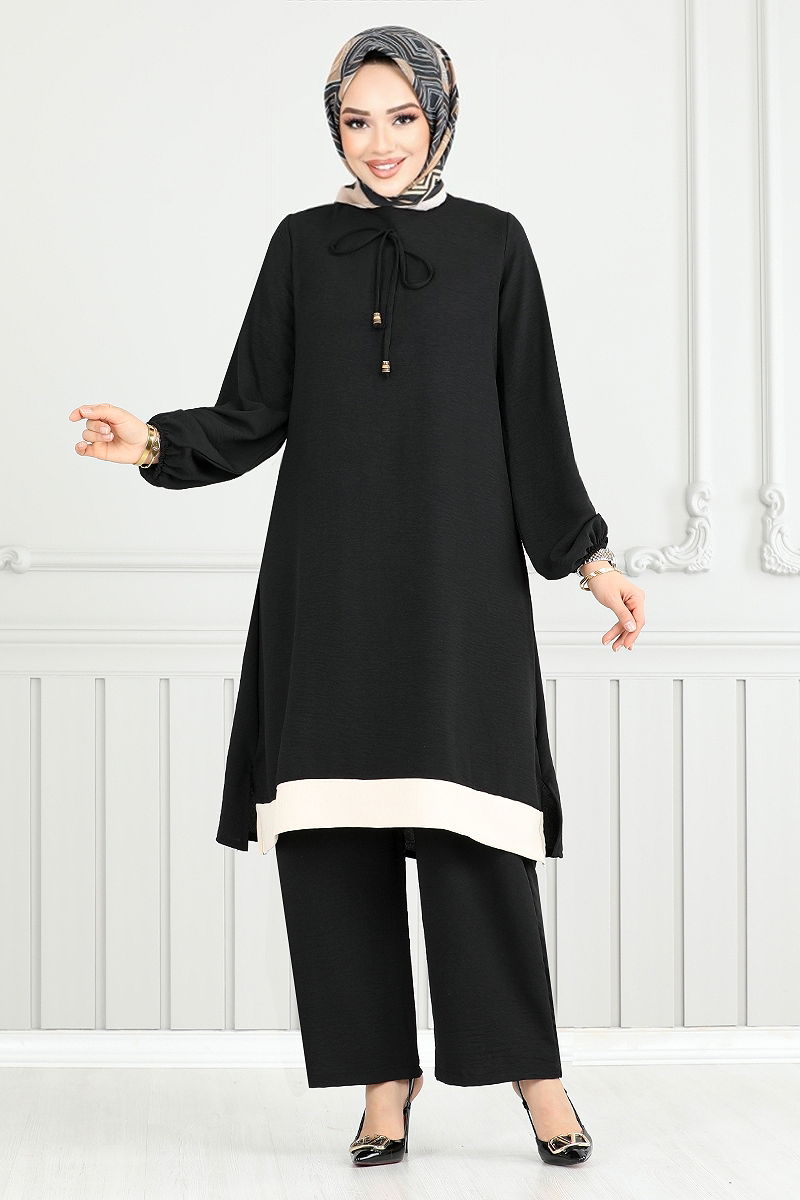 Product Feature : It is a new season hijab fashion product. It has a button that can be used from the back. The product has a Cycling collar. The tunic has a front slash.. Unlined. The skirt waist is elastic. The cuff is rubberized. There may be a tonal difference in the product due to concept photo shoots.