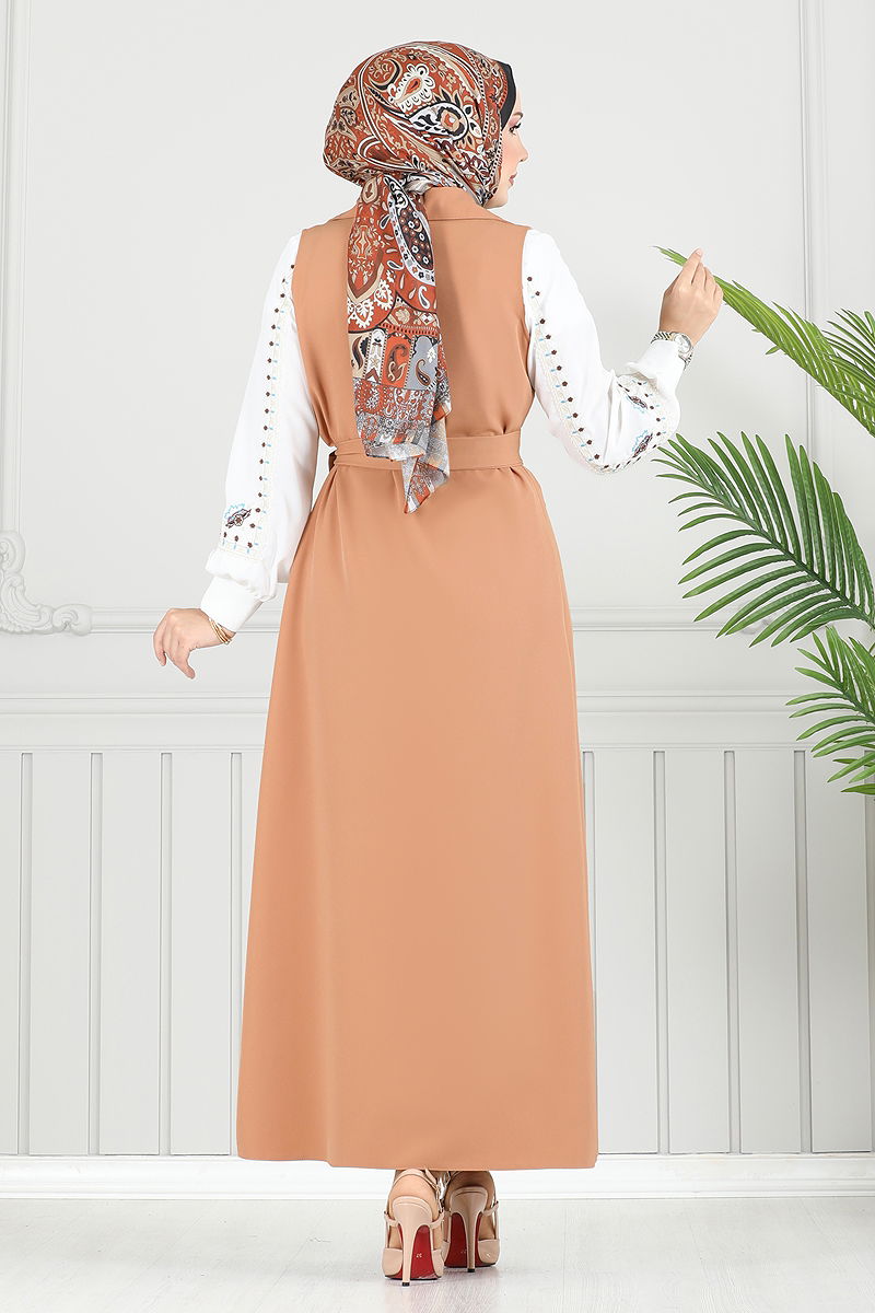 Product Feature : It is a new season hijab fashion product. There is a button available from the front. The product has a Double-breasted collar. Unlined. Skirt buttons are accessories. Belt included, optional not available. Blouse is not included. Sample combination is made with the blouse to show the intended use of the product. Accessories are not included. Pocket detail is an accessory. The skirt waist is elastic. There may be a tonal difference in the product due to concept photo shoots.