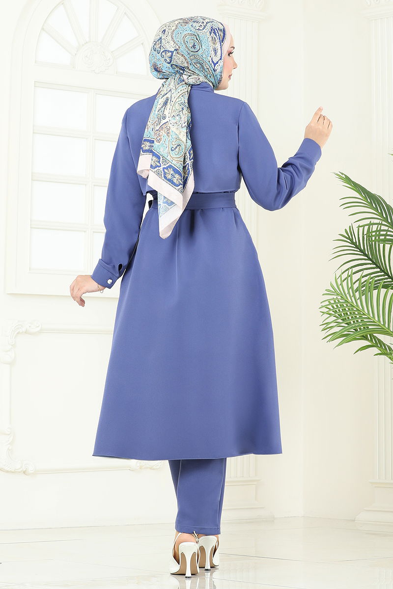 Product Feature : It is a new season hijab fashion product. The product has a Shirt collar. Unlined. The product has a zipper at the From the front part. Belt included, optional not available. Accessories are not included. The waist of the trousers is elastic. Cuff buttons are active. There may be a tonal difference in the product due to concept photo shoots.