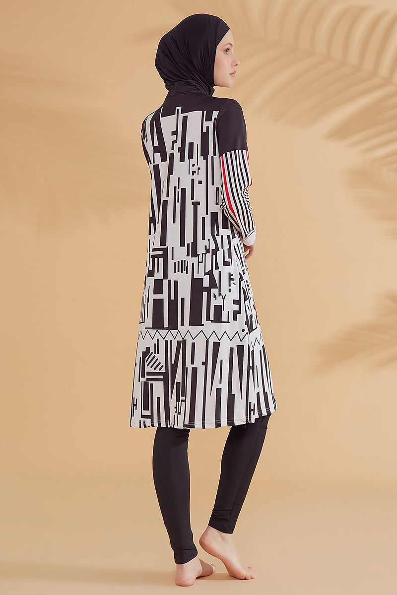 تتميز المنتج بخصائص مقاومة للماء. عند خروجه من الماء، يجف بسرعة ولا يلتصق بك. يتم ارتداء المنتج على الرأس. المنتج لديه ياقة بيضوية. غير مبطنة. الجزء السفلي من ملابس السباحة مرن. قد يكون هناك اختلاف في الدرجة اللونية في المنتج بسبب التقاط الصور الفوتوغرافية.