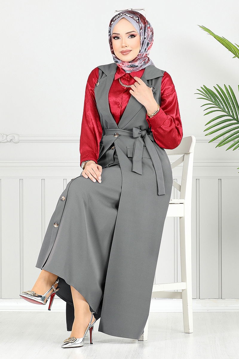 Product Feature : It is a new season hijab fashion product. There is a button available from the front. The product has a Double-breasted collar. Unlined. Skirt buttons are accessories. Belt included, optional not available. Pocket detail is an accessory. The skirt waist is elastic. There may be a tonal difference in the product due to concept photo shoots.