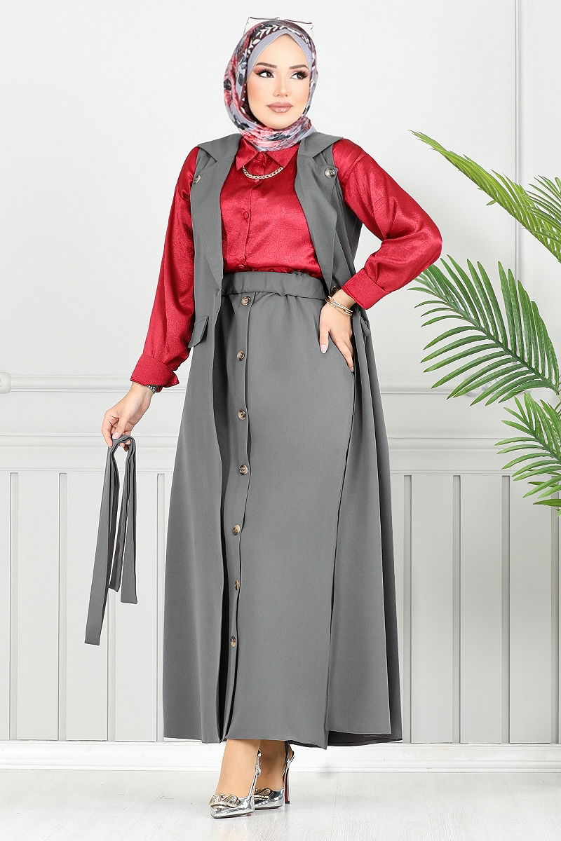 طقم رمادي غامق