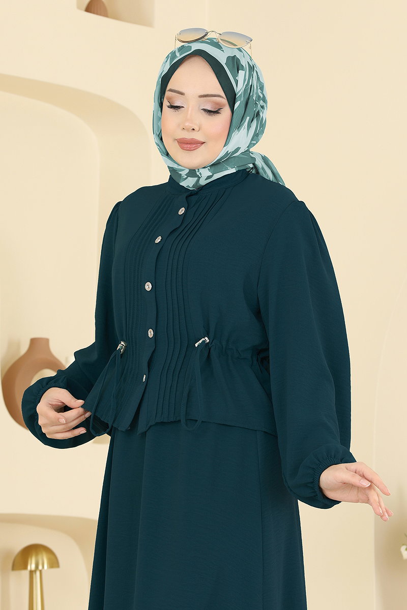 يتميز بخصر ذو أربطة. المنتج لديه ياقة نصف بيضوية. المنتج به أزرار من الأمام. غير مبطنة. .خصر التنورة مرن السوار مطاطي. قد يكون هناك اختلاف في الدرجة اللونية في المنتج بسبب التقاط الصور الفوتوغرافية.
