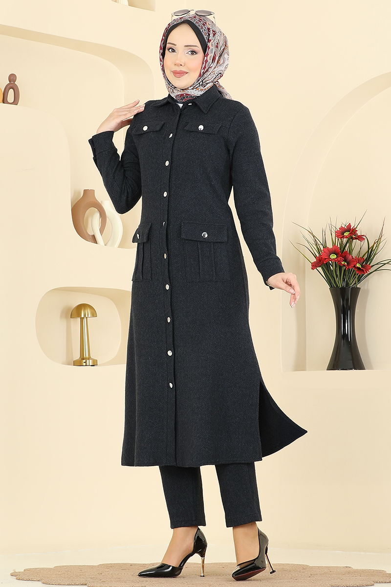 المنتج لديه ياقة القميص. المنتج به أزرار من الأمام. البلوز تحتوي على فتحة. غير مبطنة. الجيب الموجود على الصدر هو ملحق. الجيب متاح. خصر البنطال مرن. قد يكون هناك اختلاف في الدرجة اللونية في المنتج بسبب التقاط الصور الفوتوغرافية.