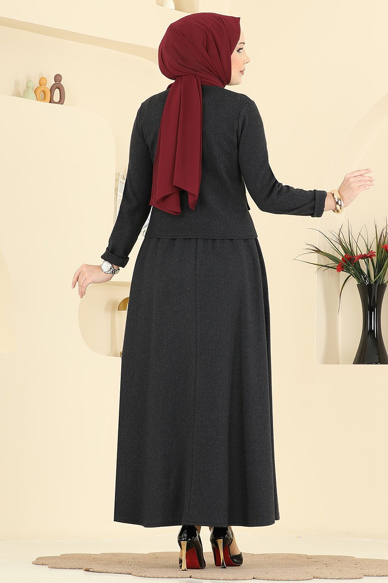المنتج لديه ياقة مستقيم. المنتج به أزرار من الأمام. تفاصيل الجيب من الملحقات. .خصر التنورة مرن قد يكون هناك اختلاف في الدرجة اللونية في المنتج بسبب التقاط الصور الفوتوغرافية.