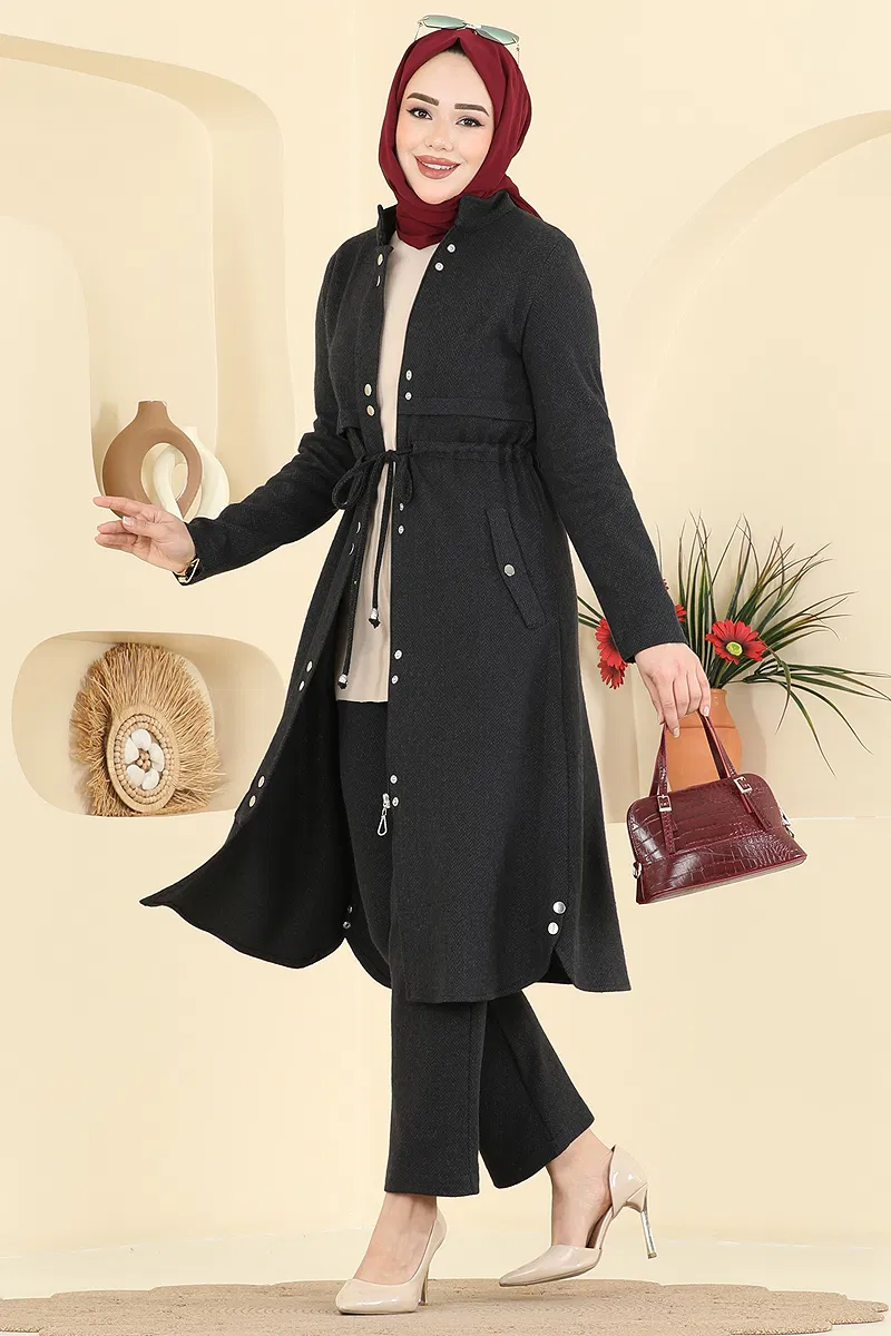 Product Feature : It is a new season hijab fashion product. It has a laced waist. It has a front snap fastener and zipper. My pocket knife has a bird’s eye rivet. The product has a Half Judge collar. The product has From the front buttons. The tunic has a front slash.. It's unlined. It's see-through.. The product has a zipper at the From the front part. Buttons are active. There is a hidden zipper available from the front There is a pocket on the tunic. The waist of the trousers is elastic. There may be a tonal difference in the product due to concept photo shoots.