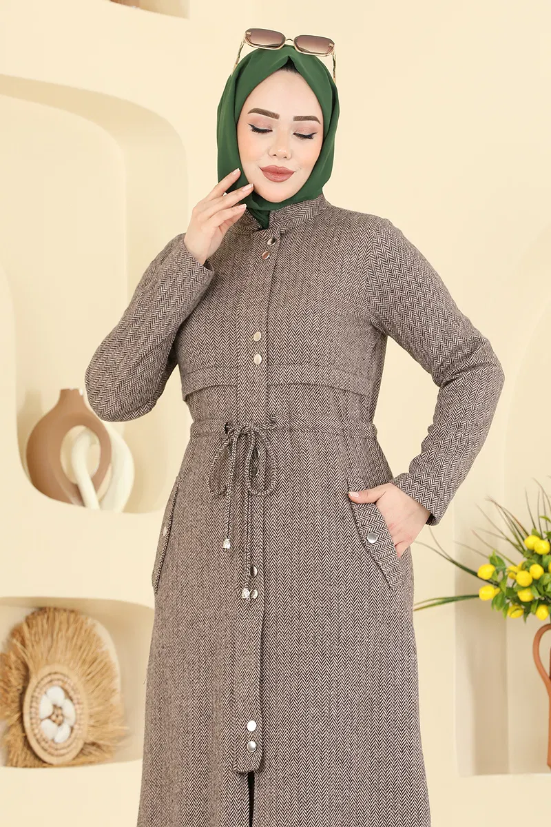 The Zippered Herringbone 2-Piece Set is a meticulously designed modest wear combo, ideal for Autumn and Winter seasons. Washable at 30 degrees on a gentle cycle, this stylish ensemble is crafted from herringbone fabric, ensuring durability. It features a semi-mandarin collar and a button-down front for a contemporary look. The outfit is unlined and opaque. With a drawstring waist, functional zippers and snaps, it offers practicality; the pants have an elastic waist and the tunic includes handy pockets. This elegant set is a perfect choice for women who prefer stylish modesty.