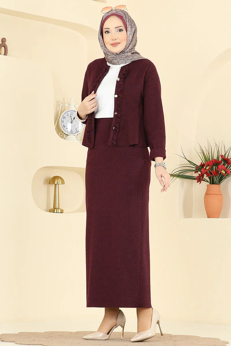 Elegant and modern, the Herringbone Chic Double Set is a stylish choice for all seasons in modest fashion. This ensemble, made from herringbone fabric, can be washed at 30 degrees on a gentle cycle. The bicycle neck jacket and buttoned front add sophistication to your attire, while the zippered waist skirt enhances your comfort. Perfect for both everyday wear and special occasions.