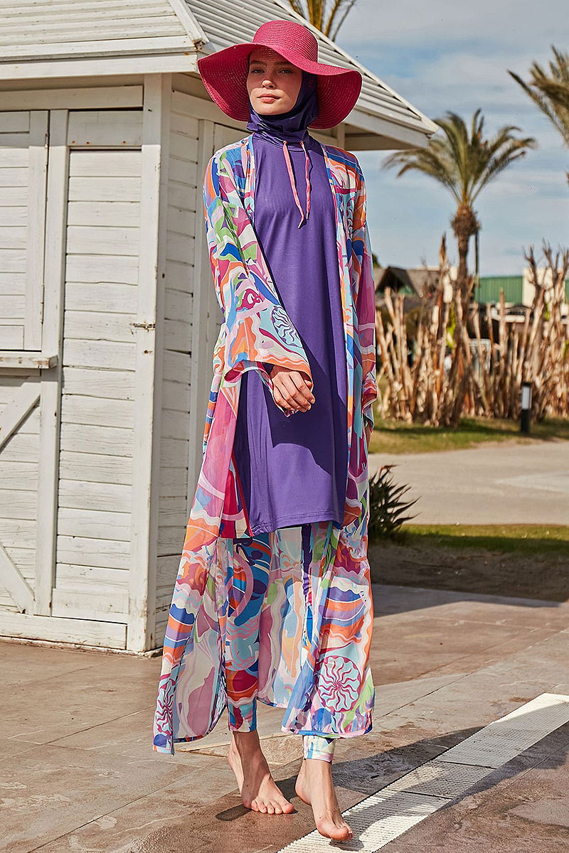 The Colorful Patterned is a modest wear that combines comfort and style for the summer season. Recommended to be hand washed, this chiffon kimono is water repellent and dries quickly after getting out of the water, ensuring a comfortable wear. The design includes a creative belt detail, making the garment versatile enough to be used as a pareo. Complete your combo with this piece, suitable for sizes 36 to 48.