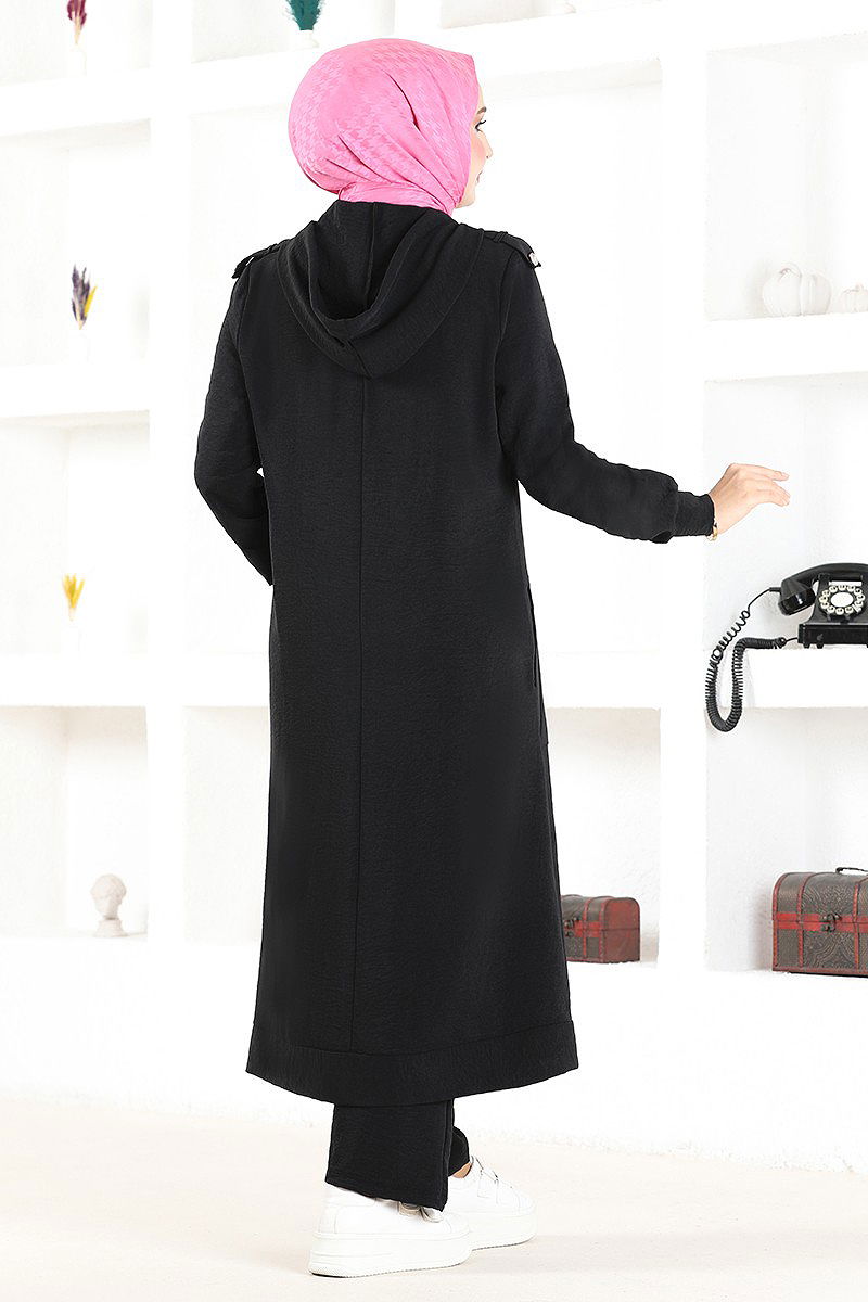 Product Feature : It is a new season hijab fashion product. Unlined.. The product has a zipper at the From the front part. The hood is sewn to the product. Pocket available. Pants have elastic waist. There may be a tonal difference in the product due to concept photo shoots.