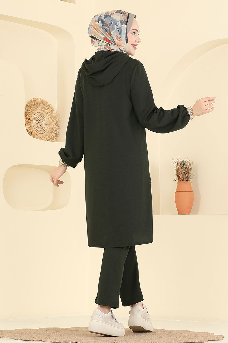 Product Feature : It is a new season hijab fashion product. The neck drawstring is active. The product has a Hooded collar. The tunic has a side slash.. Unlined. Snap details are active. The hood is sewn to the product. The waist of the trousers is elastic. The cuff is rubberized. There may be a tonal difference in the product due to concept photo shoots.