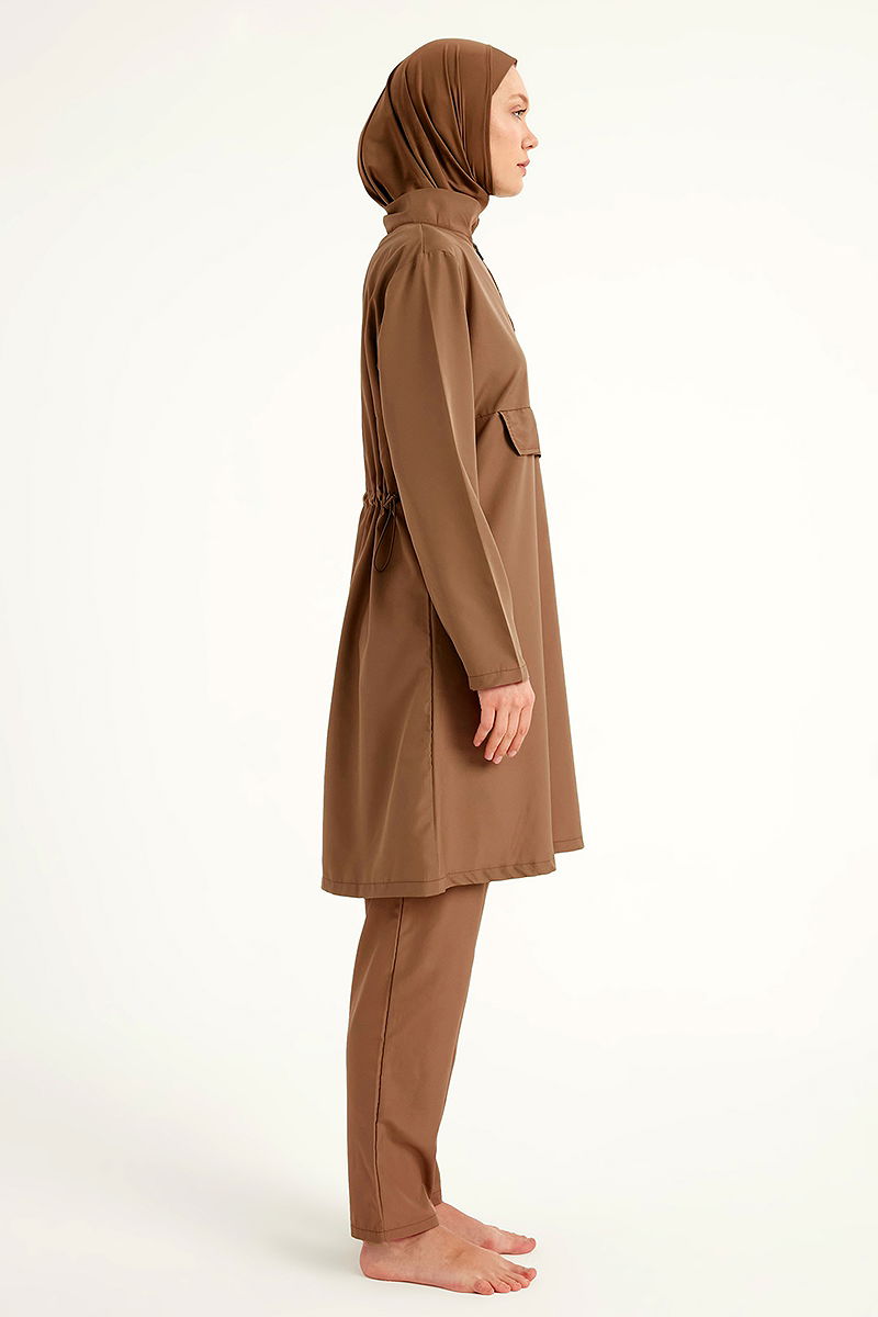 Product Feature : It is a new season hijab fashion product. There is a half zipper that can be used from the front. The product has water repellent properties. When you get out of water, it dries quickly and does not stick to you. The product has a Judge collar. Unlined. It offers ease of wear thanks to its lace-free structure and pull tab. The bottom swimsuit is elastic. There may be a tonal difference in the product due to concept photo shoots.