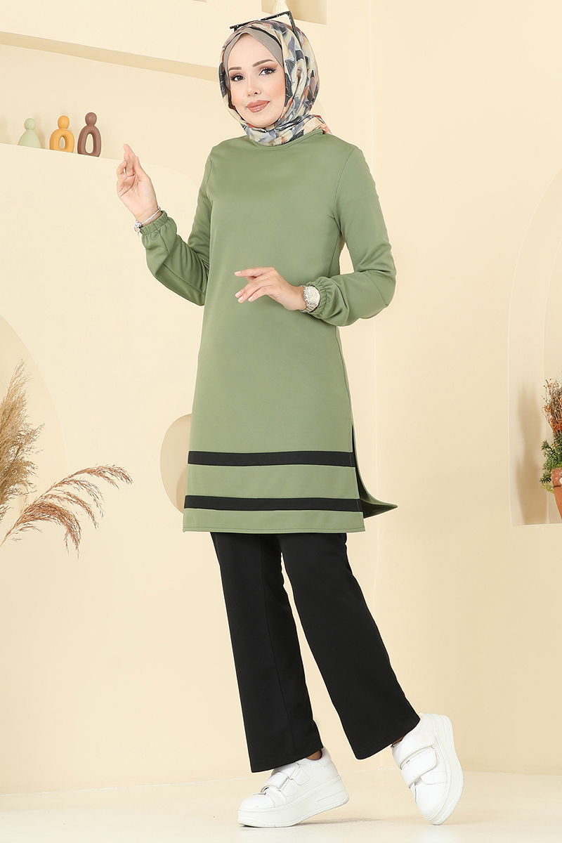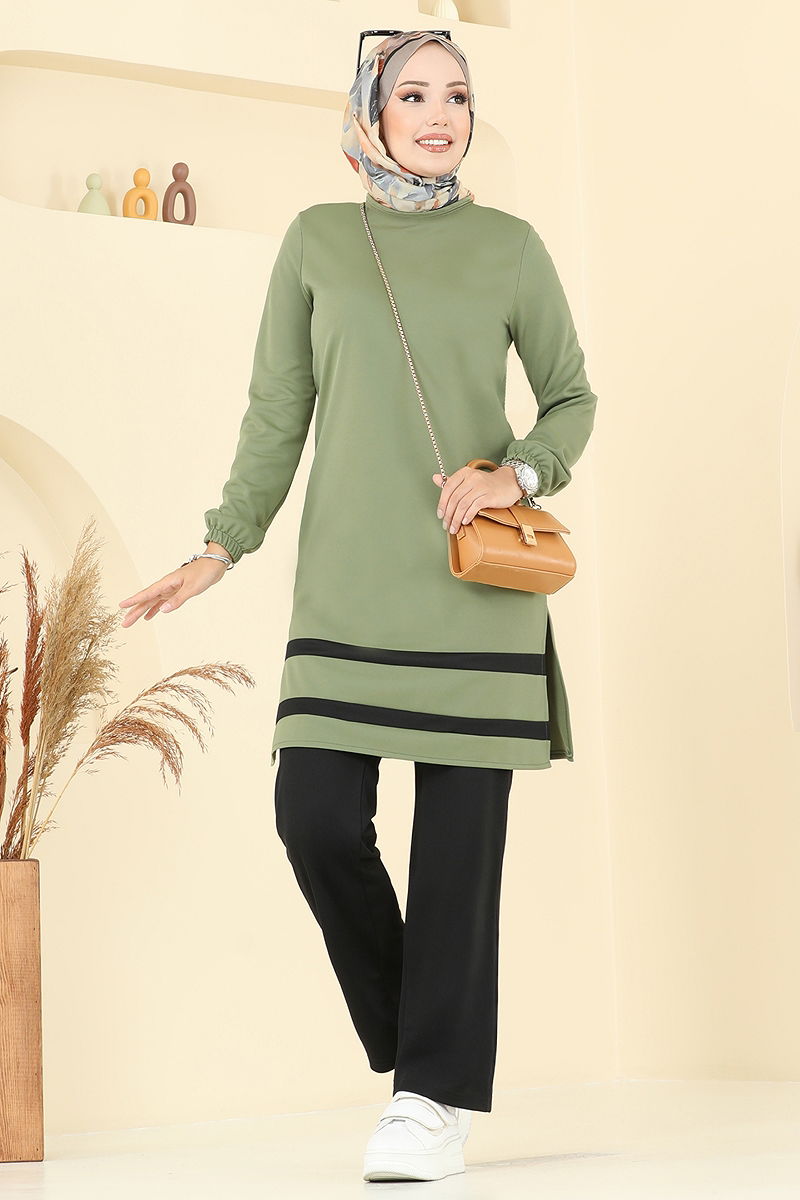 Product Feature : It is a new season hijab fashion product. The product has a Cycling collar. The tunic has a side slash.. Unlined. The waist of the trousers is elastic. The cuff is rubberized. There may be a tonal difference in the product due to concept photo shoots.