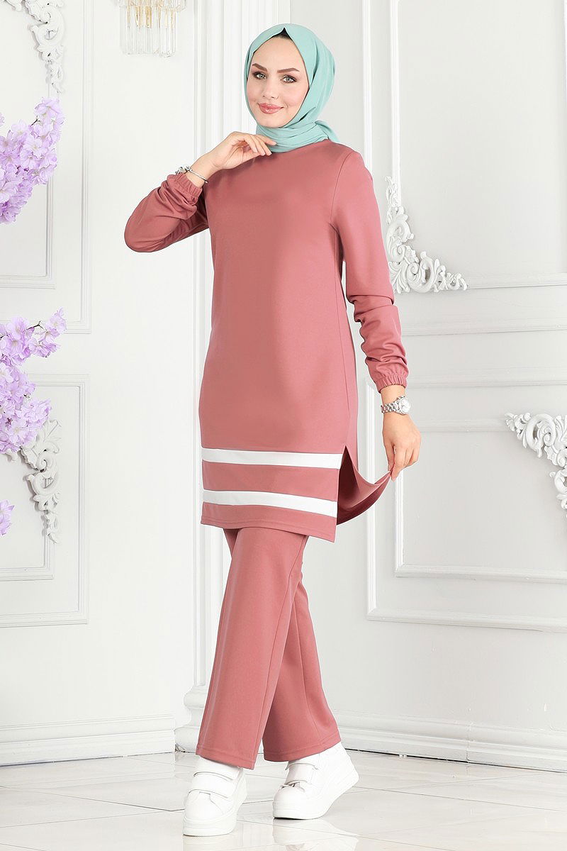 Product Feature : It is a new season hijab fashion product. The product has a Cycling collar. The tunic has a side slash.. Unlined. The waist of the trousers is elastic. The cuff is rubberized. There may be a tonal difference in the product due to concept photo shoots.