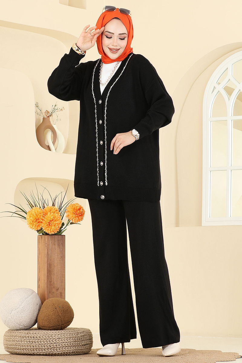 .يتكوّن المنتج من قطعتين المنتج به أزرار من الأمام. غير مبطن .الداخل غير شفاف. البلوزة غير متضمنة. صُنعت عينة من المجموعة مع البلوزة لإظهار الاستخدام المقصود للمنتج. يتميز البنطال بخصر نصف مطاطي. قد يكون هناك اختلاف في الدرجة اللونية في المنتج بسبب التقاط الصور الفوتوغرافية.