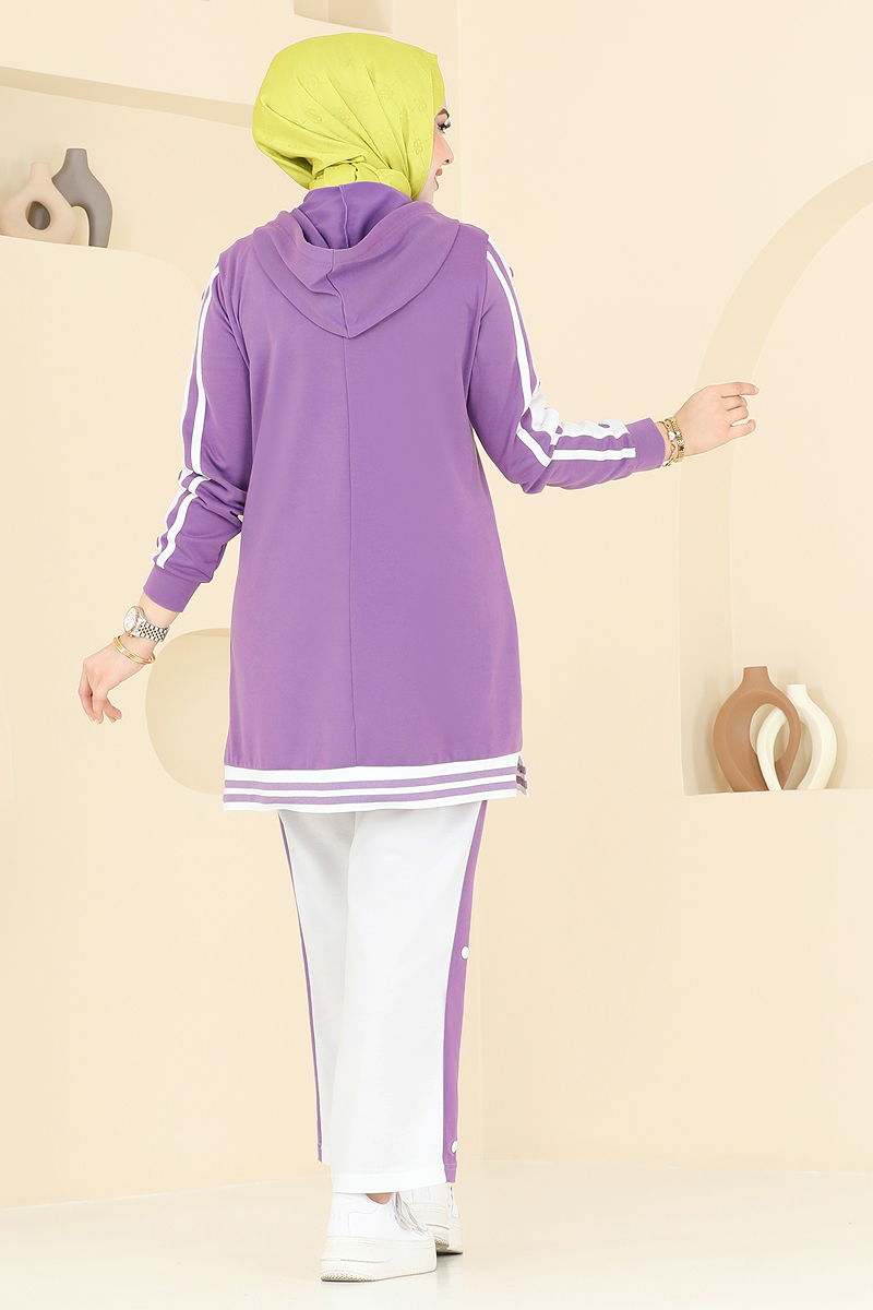 Product Feature : It is a new season hijab fashion product. The product has a Hooded collar. The product has half front buttons. The tunic has a side slash.. Unlined. The writings are in print. Snap details are an accessory. The hood is sewn to the product. The waist of the trousers is elastic. There may be a tonal difference in the product due to concept photo shoots.