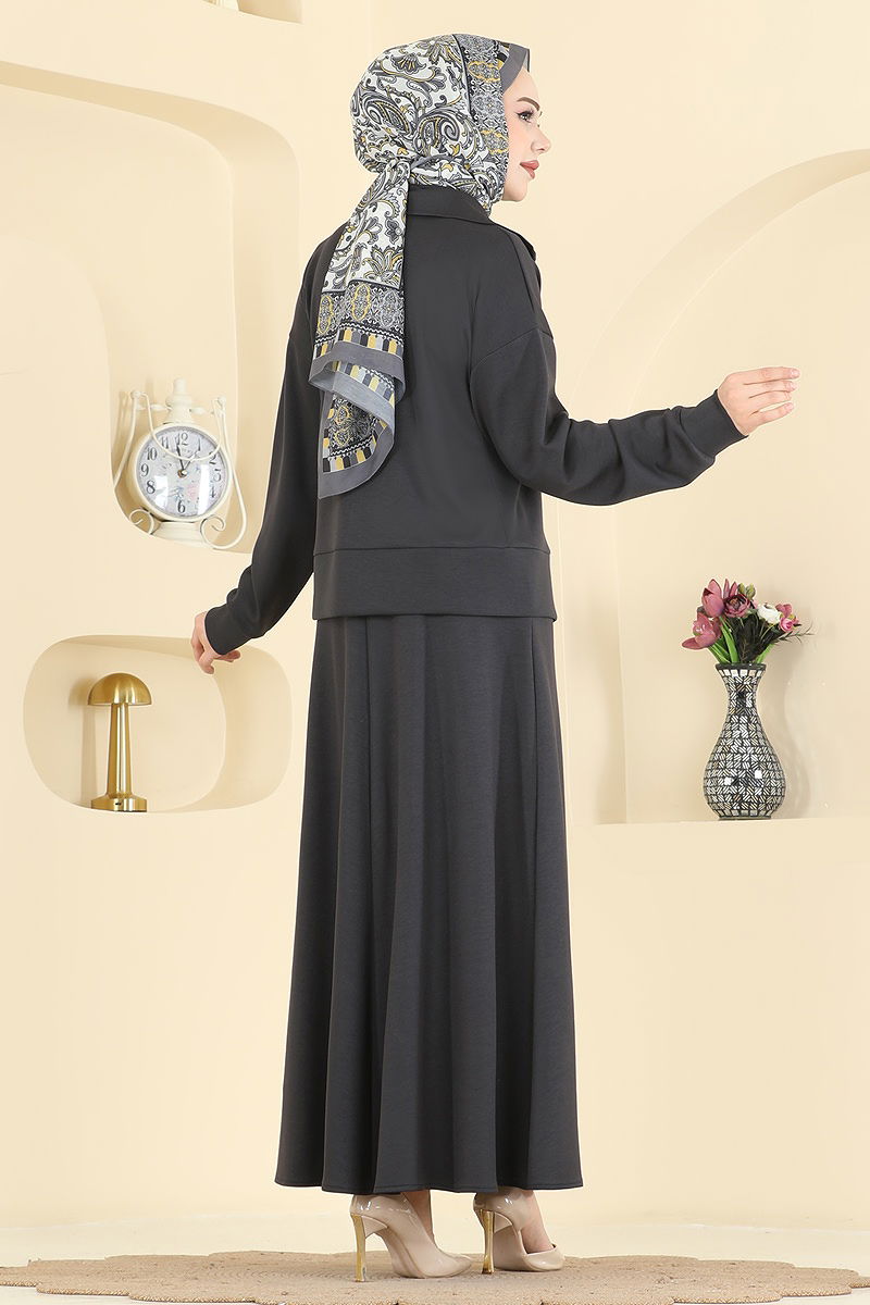 Product Feature : It is a new season hijab fashion product. There is a pocket on the skirt. The product has a Upright collar. Unlined. The product has a zipper at the From the front part. The skirt waist is elastic. There may be a tonal difference in the product due to concept photo shoots.