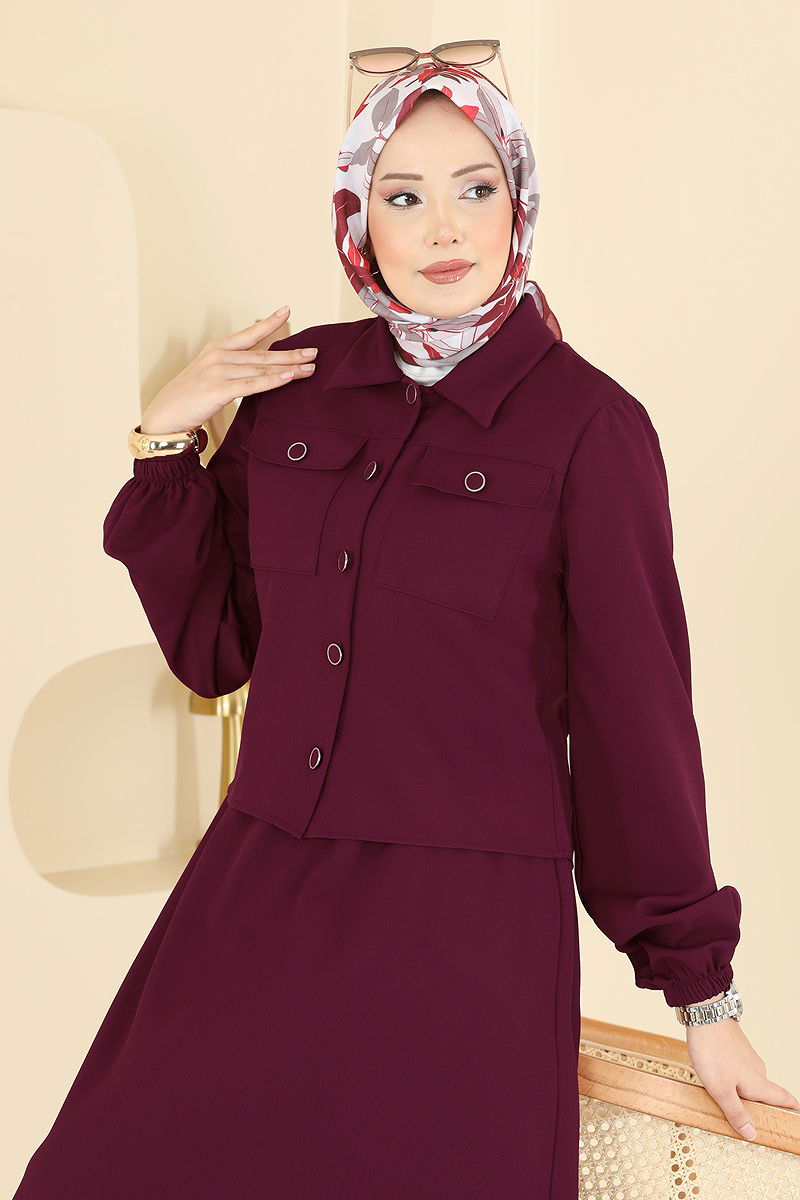 Product Feature : It is a new season hijab fashion product. The product has a Shirt collar. The product has From the front buttons. Unlined. Belt is not included. Shirt is not included. Sample combination is made with the shirt to show the intended use of the product. The chest pocket is active. The skirt waist is elastic. The cuff is rubberized. There may be a tonal difference in the product due to concept photo shoots.