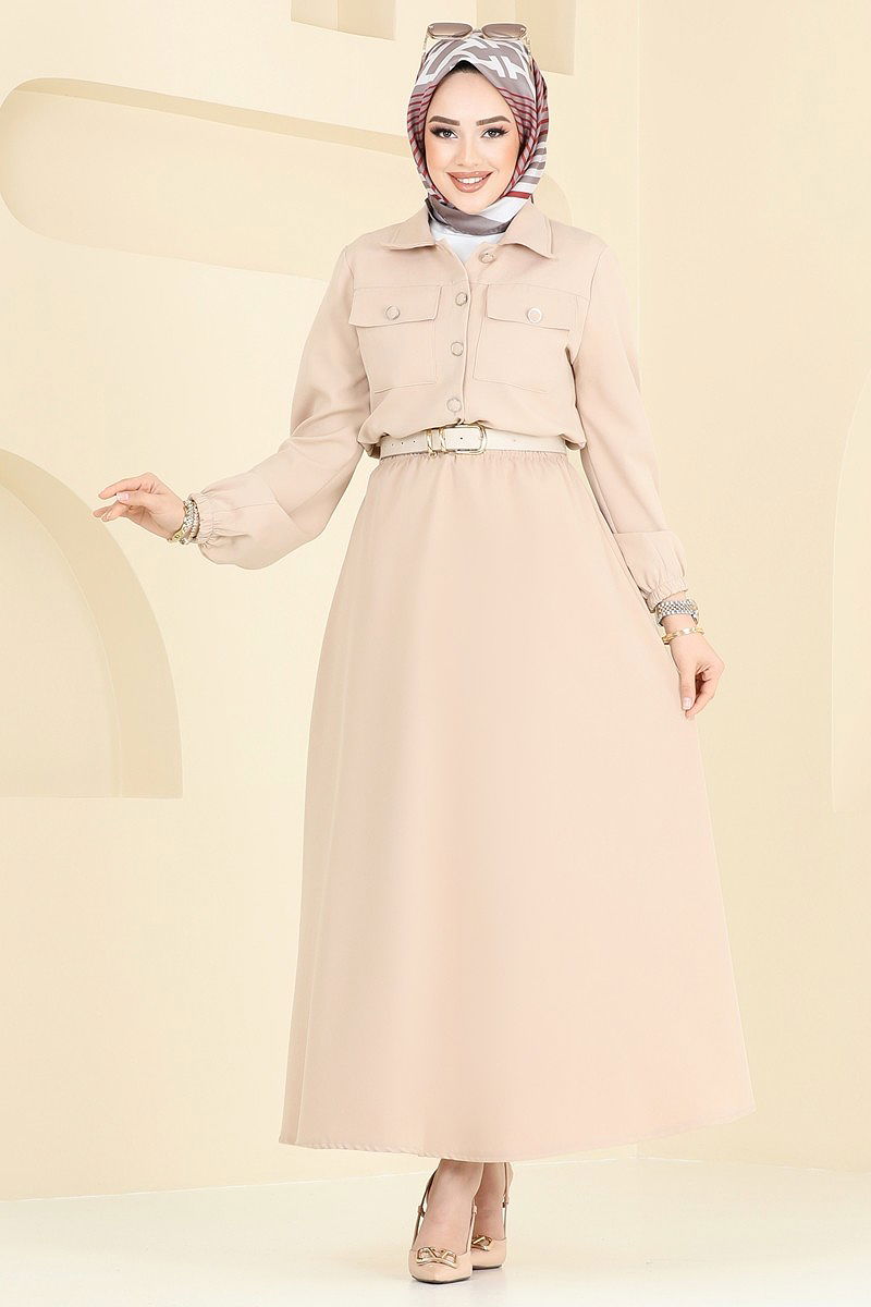 المنتج لديه ياقة القميص. المنتج به أزرار من الأمام. غير مبطنة. الحزام غير متضمن. القميص غير مرفق. تم عمل عينة من المجموعة مع القميص لإظهار الاستخدام المقصود للمنتج. الجيب الصدري نشط. .خصر التنورة مرن السوار مطاطي. قد يكون هناك اختلاف في الدرجة اللونية في المنتج بسبب التقاط الصور الفوتوغرافية.