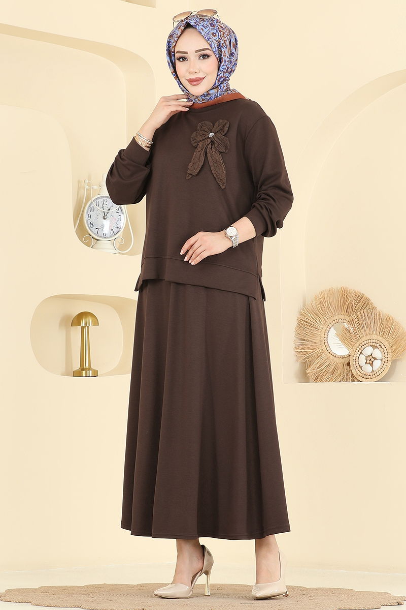 المنتج لديه ياقة دائرية. غير مبطنة. تتم خياطة تفاصيل الملحقات على المنتج. .خصر التنورة مرن قد يكون هناك اختلاف في الدرجة اللونية في المنتج بسبب التقاط الصور الفوتوغرافية.