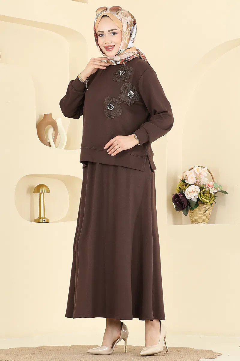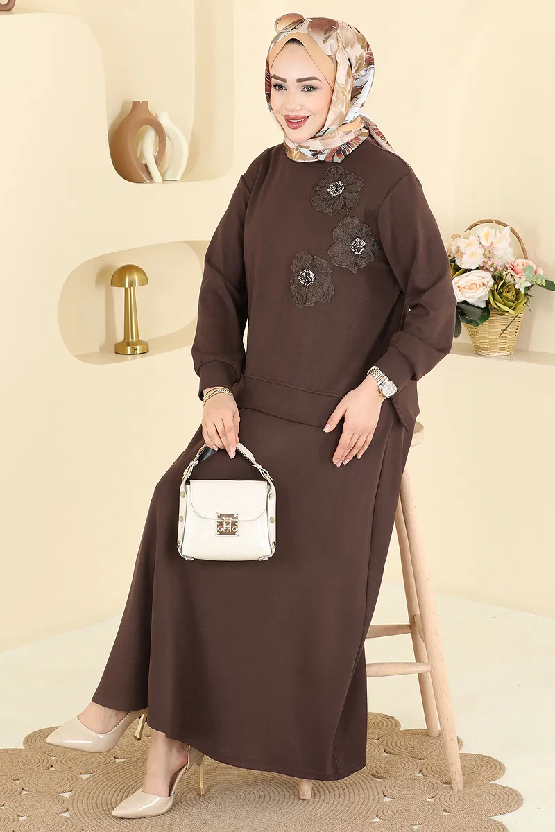 Product Feature : It is a new season hijab fashion product. The product has a Cycling collar. Unlined. The bead details are sewn. Flower detail is sewn. The skirt waist is elastic. There may be a tonal difference in the product due to concept photo shoots.