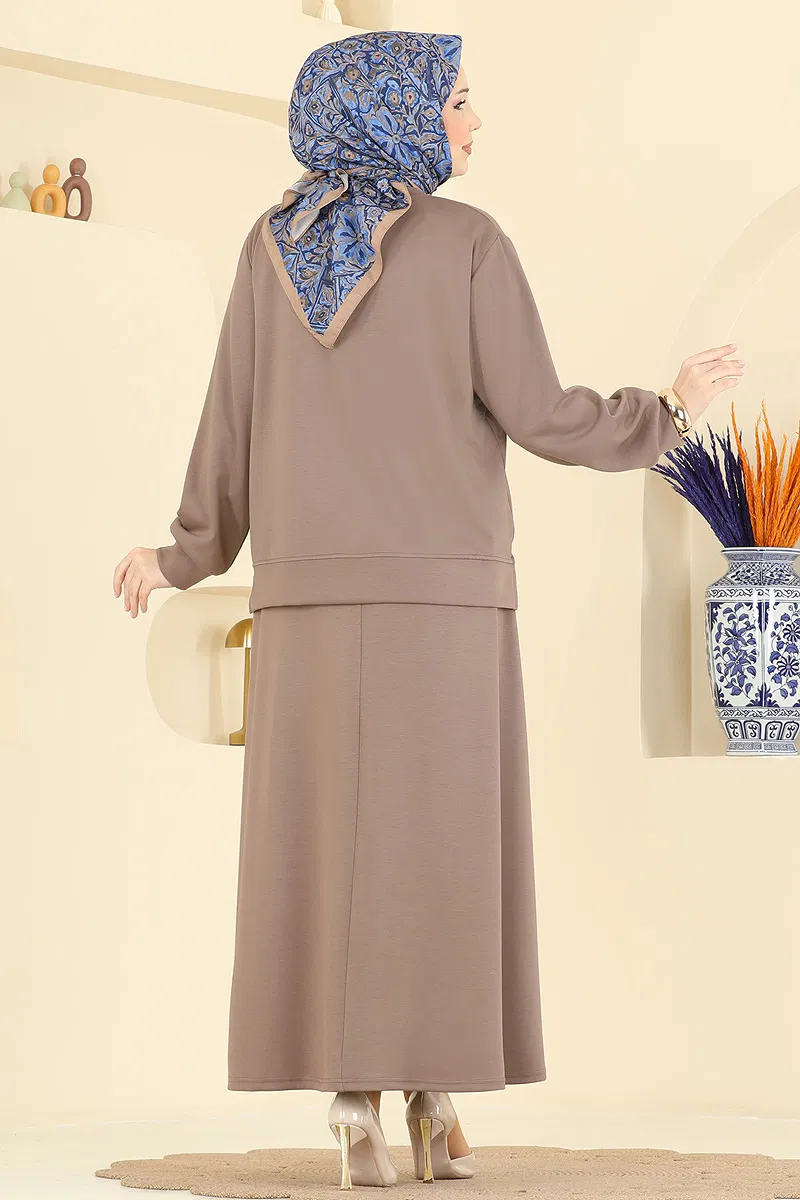 The Floral Detailed Modal Suit KOMBİN is an Islamic wear product that can be comfortably used in all seasons, highlighted by its four-season design. The soft texture and breathability of the modal fabric offer both comfort and style. The crew neck and unlined design provide a modern look while the hand-stitched bead and floral details add elegance. The elastic detail at the waist of the skirt ensures a comfortable fit. It is recommended to wash at 30 degrees on a delicate cycle.