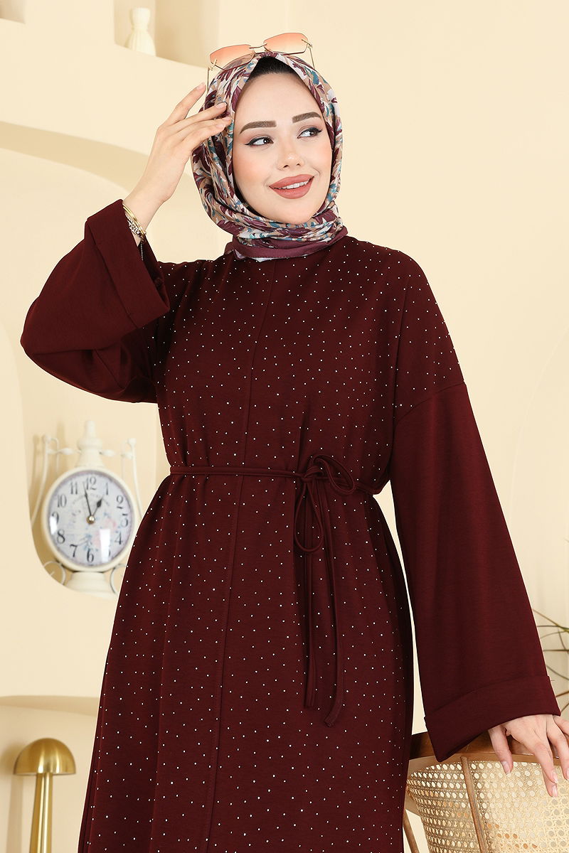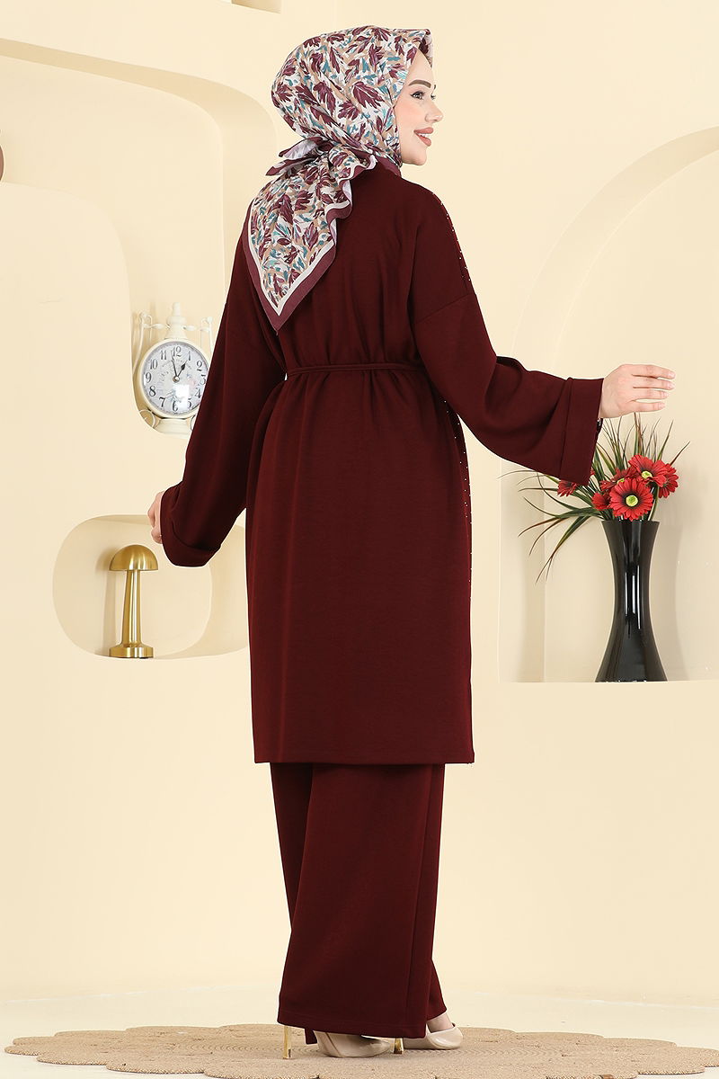 Product Feature : It is a new season hijab fashion product. The product has a Cycling collar. The tunic has a side slash.. Unlined. The stones are glued. Lacing is included, optional not available. The waist of the trousers is elastic. There may be a tonal difference in the product due to concept photo shoots.