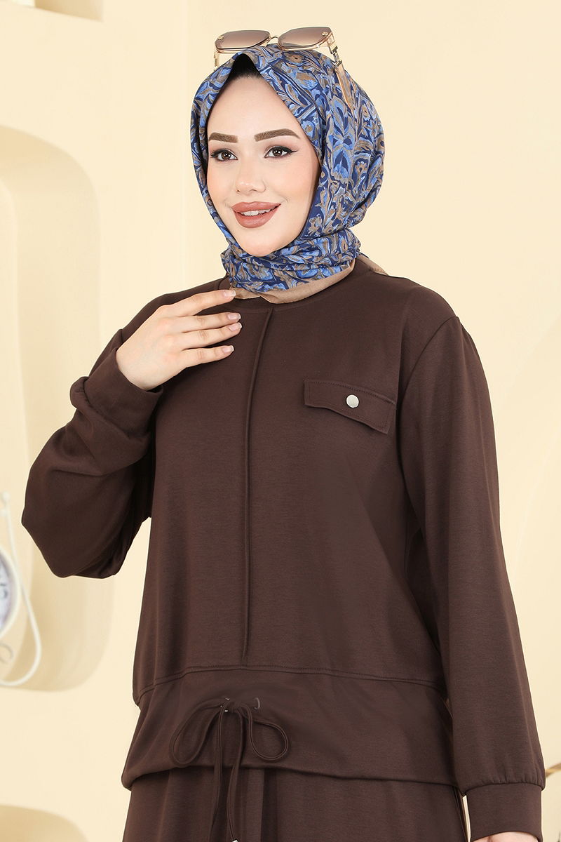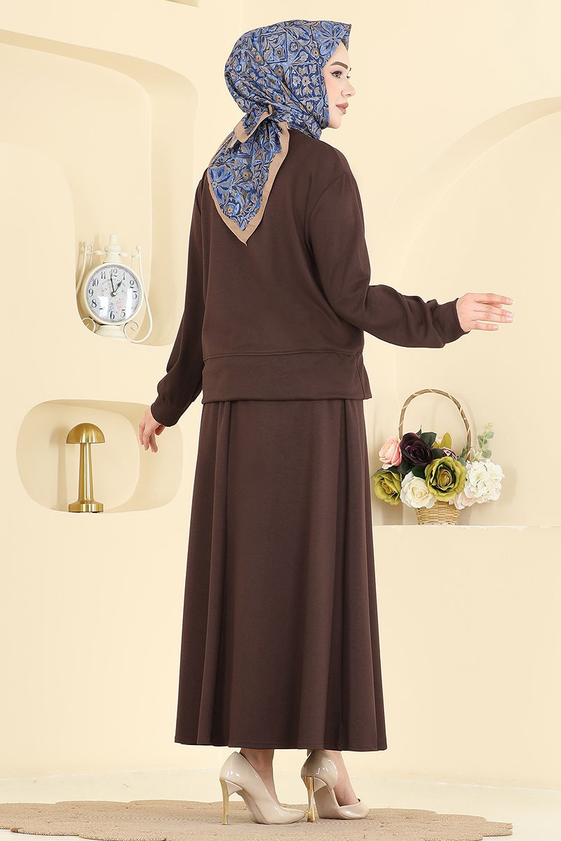 The Dual Set with Pocket Accessory from COMBINATION brand merges elegance and comfort in a modest apparel. Suitable for all seasons, this product is made from durable Modal and Oyso fabrics. It can be gently washed at 30 degrees. The bike neck design adds elegance, while the pocket detail on the chest provides functionality. The elastic waist on the skirt ensures comfortable wear. This two-piece set is perfect for both indoor and outdoor use.