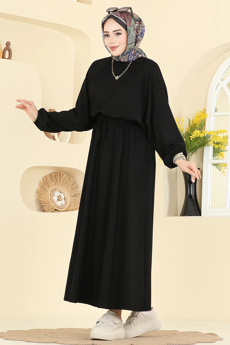 The Elastic Cuffed Modal Set is an elegant modest wear that prioritizes your style and comfort. Made from premium modal fabric, this set offers breathability and comfort across all seasons. Its crew neck design and unlined structure emphasize lightness, while the elastic cuffs and drawstring waist offer practicality. Easily washable at 30 degrees on a gentle cycle. Ideal for both everyday wear and special occasions, this chic set will become an indispensable part of your wardrobe.