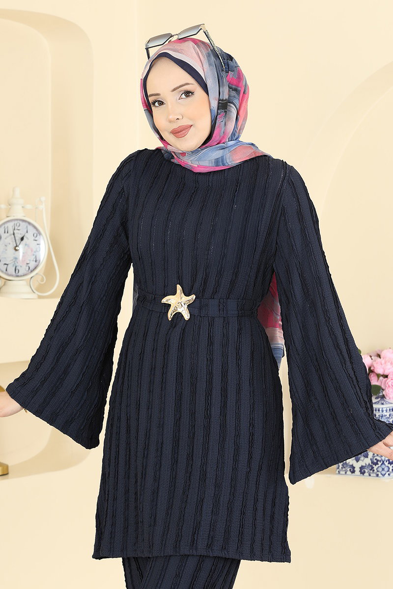 يوجد حزام يمكن استخدامه من الأمام. يوجد زر يمكن استخدامه من الخلف. المنتج لديه ياقة دائرية. غير مبطنة. .لا يوجد جسر حزام في المنتج الحزام متضمن، ،يمكن استخدامها حسب الرغبة يتم تضمين البروش،يمكن استخدامها حسب الرغبة خصر البنطال مرن. قد يكون هناك اختلاف في الدرجة اللونية في المنتج بسبب التقاط الصور الفوتوغرافية.