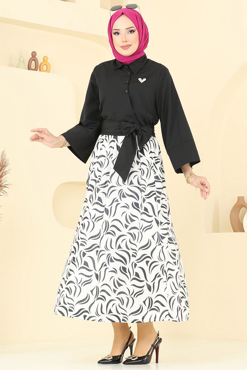 يحتوي على حزام يمكن تثبيته من الجانب. المنتج لديه ياقة القميص. المنتج به أزرار من الأمام. غير مبطنة. يتم خياطة الحزام على المنتج. الملحقات غير متضمنة. .خصر التنورة مرن قد يكون هناك اختلاف في الدرجة اللونية في المنتج بسبب التقاط الصور الفوتوغرافية.
