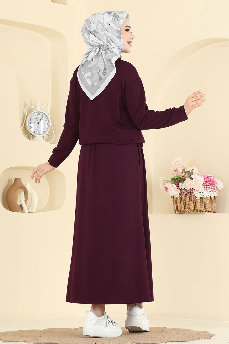 The Tuniği Lace-up Modal Set is a versatile hijab outfit suitable for wearing across all seasons. It can be washed gently at 30 degrees without wringing. Featuring a shirt collar design and unlined, the product in the image is size 38. It has a half-zipper at the front for easy wear and adjustable drawstrings at the right and left hem. The skirt has an elastic waist for comfort.