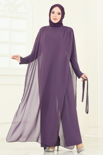 The Asymmetric Cut Hijab Suit is an ideal choice that offers both elegance and comfort. Suitable for all seasons, this product can be washed at 30 degrees due to its delicate nature. Made from high-quality woven dabıl fabric, this suit features a bicycle neck and slit details for a modern look. Its lining-free design and zippered back make it practical to use. The waist of the product has a specially sewed adjustable belt to maintain its shape. Consisting of a tunic and trousers, this suit offers functionality with active cuff buttons. It is ideal for both everyday use and special occasions.