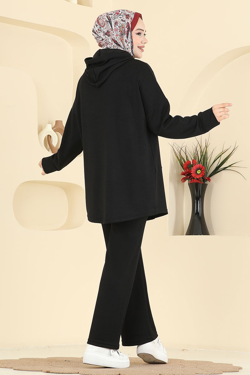 Elegant and comfortable, the Accessory Buckled Modal Set brings a modern flair to modest fashion. This ensemble can be used comfortably in all seasons and is easily cleaned at 30 degrees with a gentle wash. The hoodie's design and active tie-neck ensure both comfort and style. The unlined design is light and practical, while the elastic waistband on the trousers ensures a perfect fit. This modest set, suitable for all occasions, allows you to express your style with comfort.