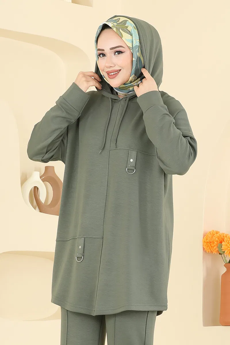 Elegant and comfortable, the Accessory Buckled Modal Set brings a modern flair to modest fashion. This ensemble can be used comfortably in all seasons and is easily cleaned at 30 degrees with a gentle wash. The hoodie's design and active tie-neck ensure both comfort and style. The unlined design is light and practical, while the elastic waistband on the trousers ensures a perfect fit. This modest set, suitable for all occasions, allows you to express your style with comfort.