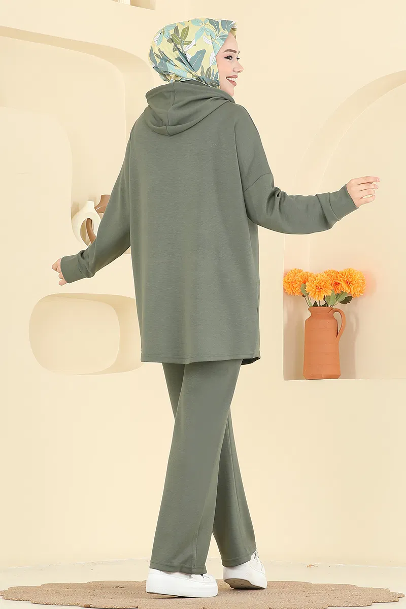 Product Feature : It is a new season hijab fashion product. The neck drawstring is active. The product has a Hooded collar. Unlined. The hood is sewn to the product. The waist of the trousers is elastic. There may be a tonal difference in the product due to concept photo shoots.
