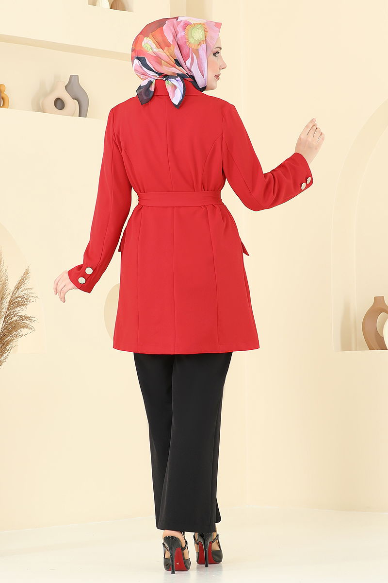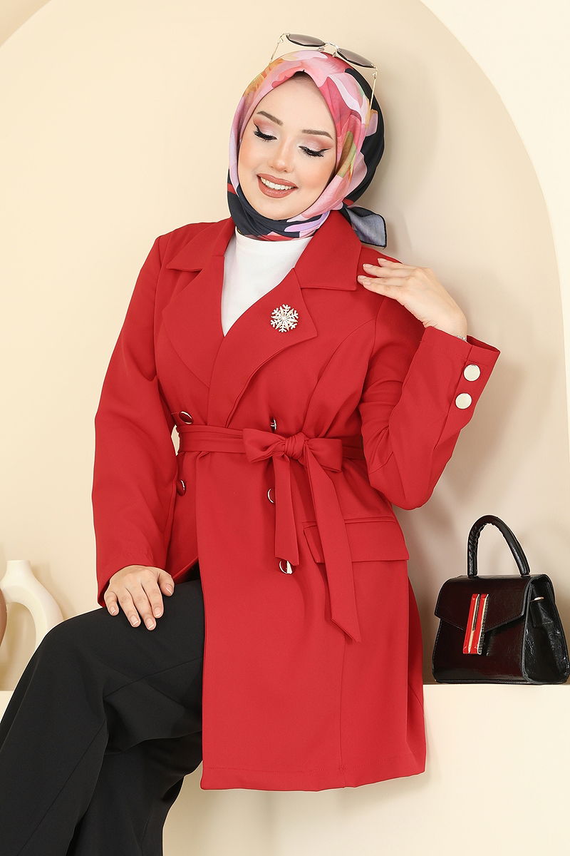المنتج لديه ياقة مفتوحة. المنتج به أزرار من الأمام. غير مبطنة. الحزام متضمن، ،يمكن استخدامها حسب الرغبة الملحقات غير متضمنة. البلوزة غير متضمنة. صُنعت عينة من المجموعة مع البلوزة لإظهار الاستخدام المقصود للمنتج. تفاصيل الجيب عبارة عن إكسسوارات. خصر البنطال مرن. أزرار الأكمام إكسسوارات. قد يكون هناك اختلاف في الدرجة اللونية في المنتج بسبب التقاط الصور الفوتوغرافية.