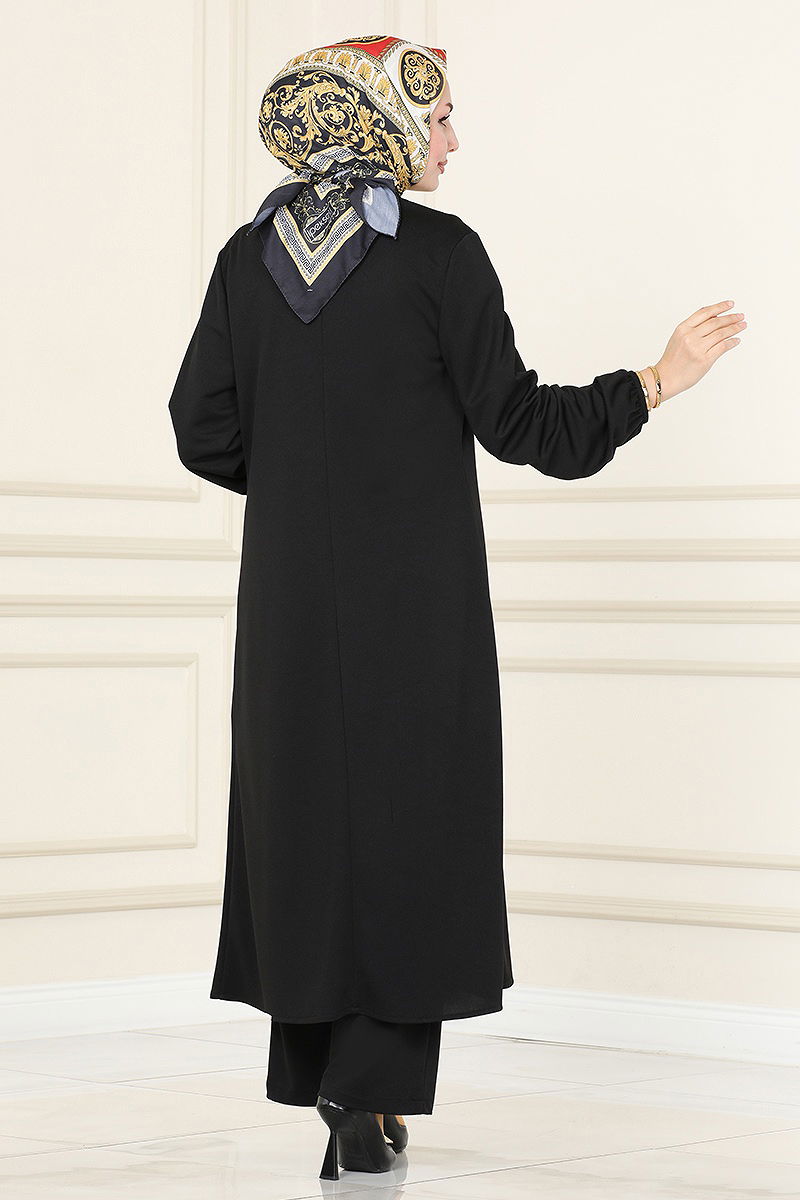 المنتج لديه ياقة دائرية. غير مبطنة. البلوزة الداخلية بلا أكمام. الملحقات غير متضمنة. خصر البنطال مرن. قد يكون هناك اختلاف في الدرجة اللونية في المنتج بسبب التقاط الصور الفوتوغرافية.