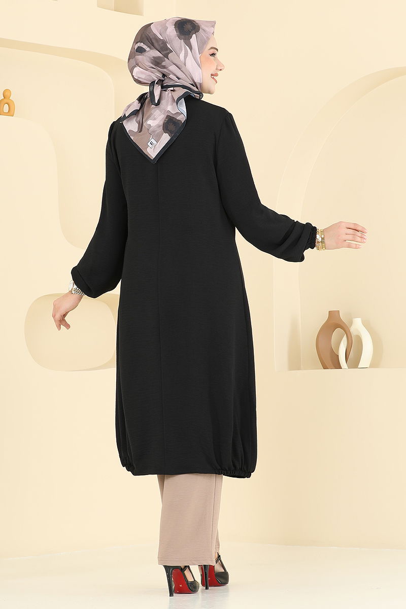 المنتج لديه ياقة نصف بيضوية. المنتج به أزرار نصف أمامي. غير مبطنة. تفاصيل الأربطة عبارة عن إكسسوارات. التنورة من الأطراف مطاطية السحّاب هو أحد الإكسسوارات. خصر البنطال مرن. السوار مطاطي. قد يكون هناك اختلاف في الدرجة اللونية في المنتج بسبب التقاط الصور الفوتوغرافية.