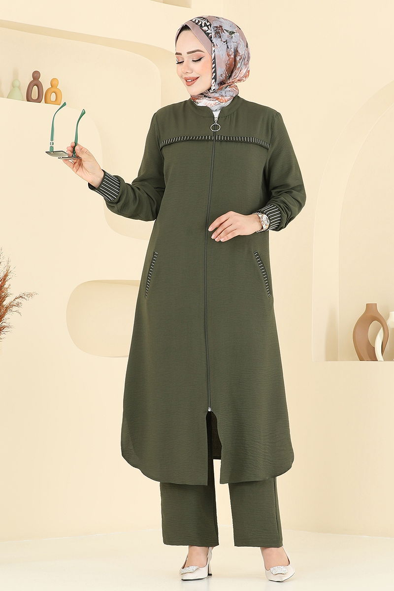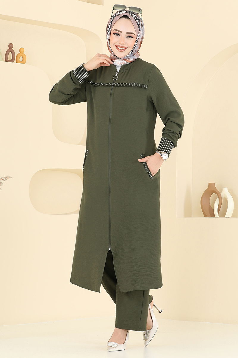 Product Feature : It is a new season hijab fashion product. The product has a Half Judge collar. Unlined. The product has a zipper at the From the front part. Blouse is not included. Sample combination is made with the blouse to show the intended use of the product. Pocket available. The waist of the trousers is elastic. There may be a tonal difference in the product due to concept photo shoots.