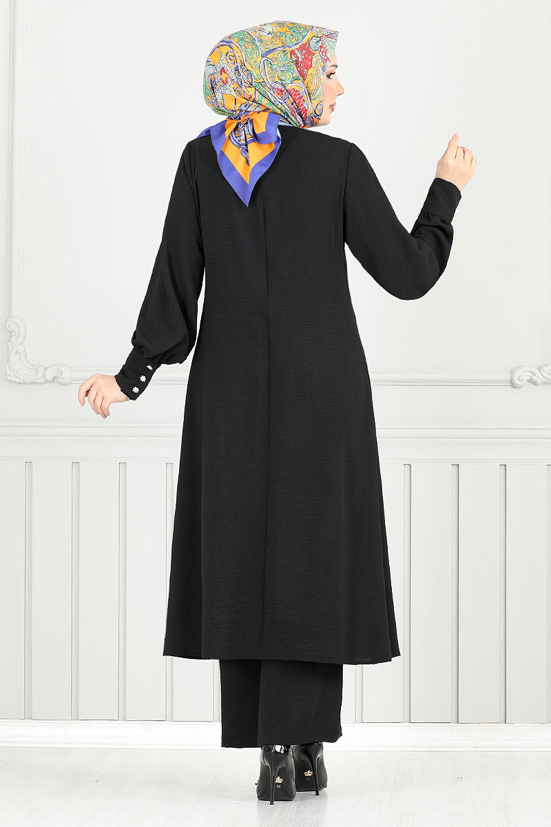 المنتج لديه ياقة دائرية. يحتوي على فتحة. غير مبطنة. المنتج به سحاب في جزء من الخلف. الأزرار هي إكسسوارات. خصر البنطال مرن. أزرار الكفة نشطة. قد يكون هناك اختلاف في الدرجة اللونية في المنتج بسبب التقاط الصور الفوتوغرافية.