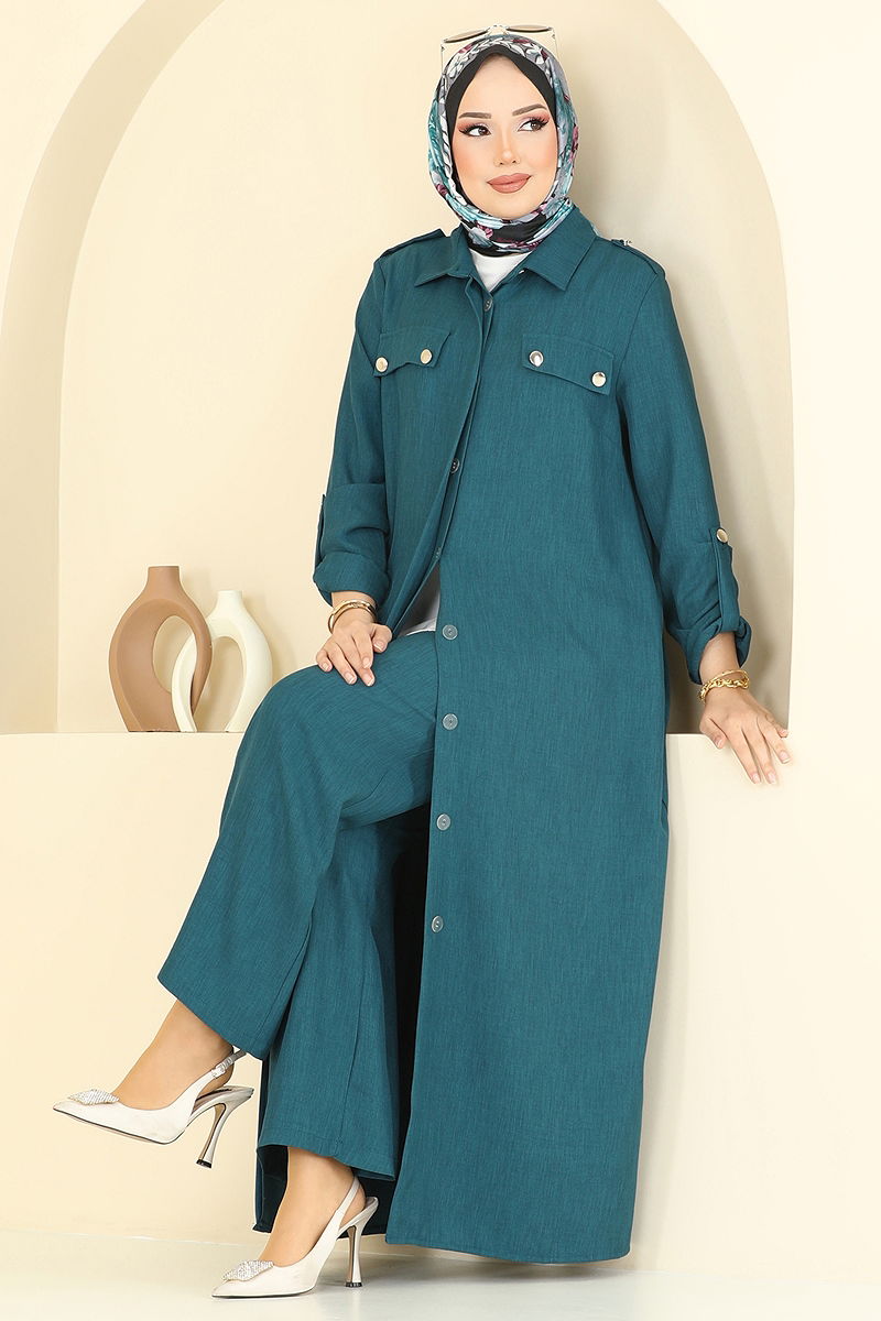 المنتج لديه ياقة القميص. المنتج به أزرار جيزلي. البلوز تحتوي على فتحة. غير مبطنة. البلوزة غير متضمنة. صُنعت عينة من المجموعة مع البلوزة لإظهار الاستخدام المقصود للمنتج. يحتوي المنتج على جيب. خصر البنطال مرن. أزرار الكفة نشطة. قد يكون هناك اختلاف في الدرجة اللونية في المنتج بسبب التقاط الصور الفوتوغرافية.