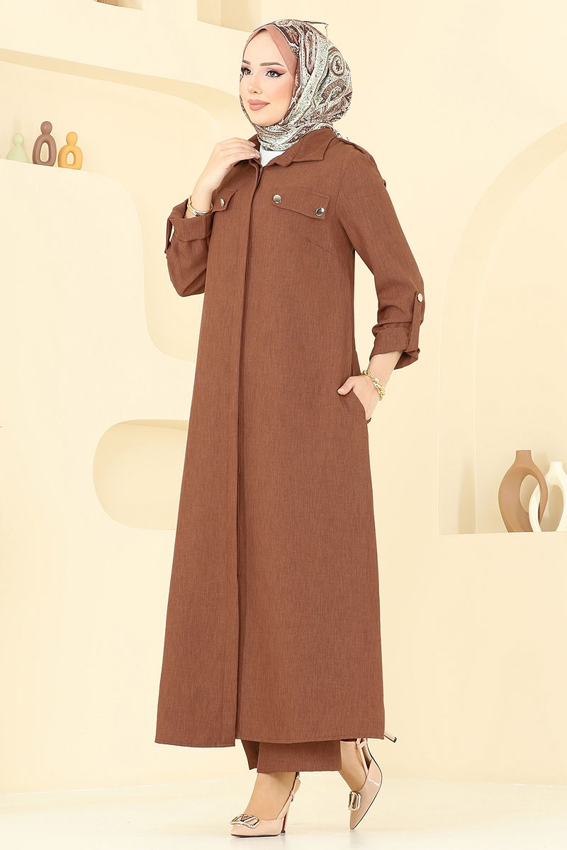 المنتج لديه ياقة القميص. المنتج به أزرار جيزلي. البلوز تحتوي على فتحة. غير مبطنة. البلوزة غير متضمنة. صُنعت عينة من المجموعة مع البلوزة لإظهار الاستخدام المقصود للمنتج. يحتوي المنتج على جيب. خصر البنطال مرن. أزرار الكفة نشطة. قد يكون هناك اختلاف في الدرجة اللونية في المنتج بسبب التقاط الصور الفوتوغرافية.