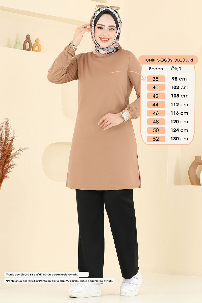 يتم ارتداء المنتج على الرأس. المنتج لديه ياقة دائرية. البلوز تحتوي على فتحة. غير مبطنة. خصر البنطال مرن. السوار مطاطي. قد يكون هناك اختلاف في الدرجة اللونية في المنتج بسبب التقاط الصور الفوتوغرافية.