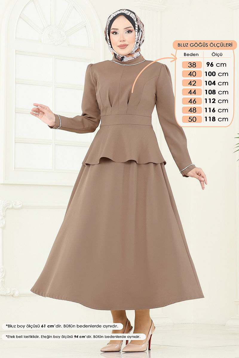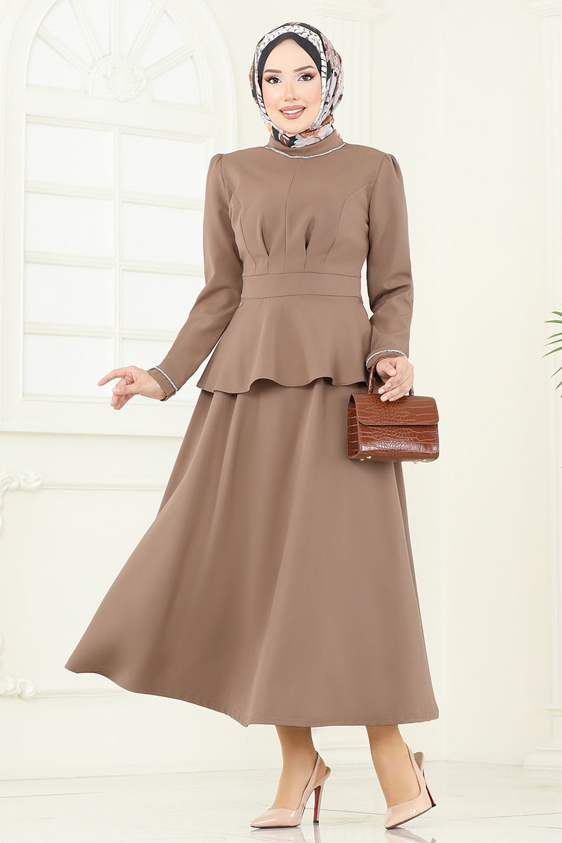 المنتج لديه ياقة بيضوية. غير مبطنة. المنتج به سحاب في جزء من الخلف. يتم لصق الحجارة. المنتج يحتوي على حزام خصر مُخاط. .خصر التنورة مرن قد يكون هناك اختلاف في الدرجة اللونية في المنتج بسبب التقاط الصور الفوتوغرافية.