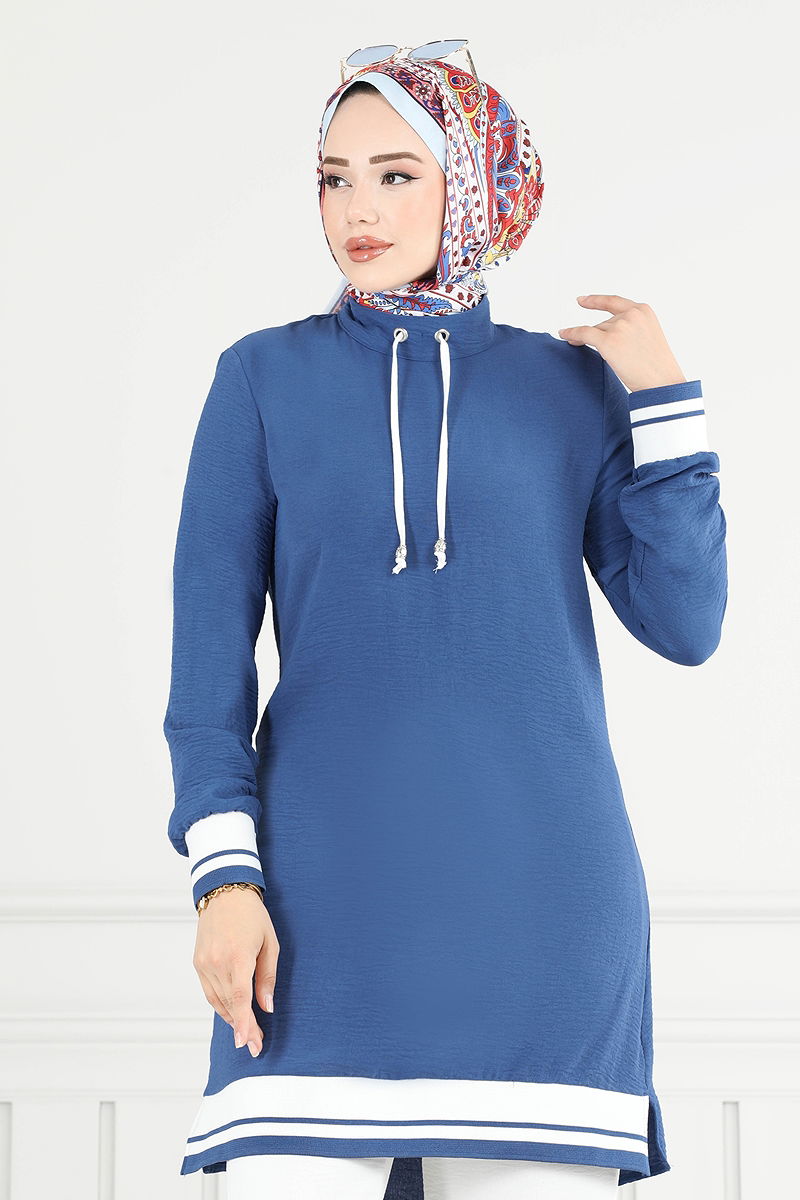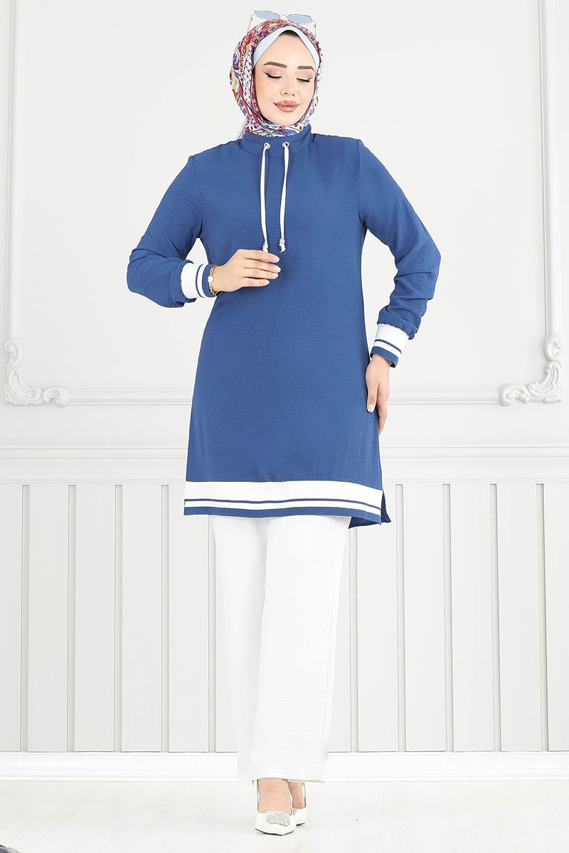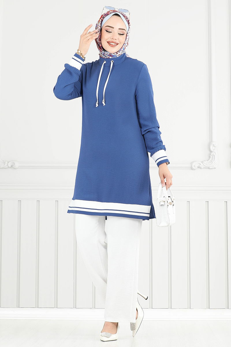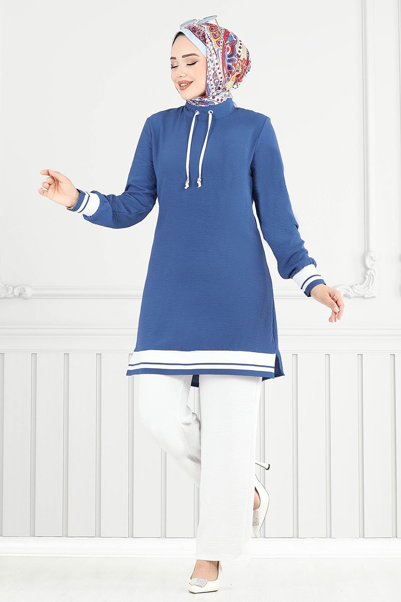 Product Feature : It is a new season hijab fashion product. It has a button that can be used from the back. The product has a Judge collar. The tunic has a side slash.. Unlined. Lacing details are accessories. The waist of the trousers is elastic. There may be a tonal difference in the product due to concept photo shoots.