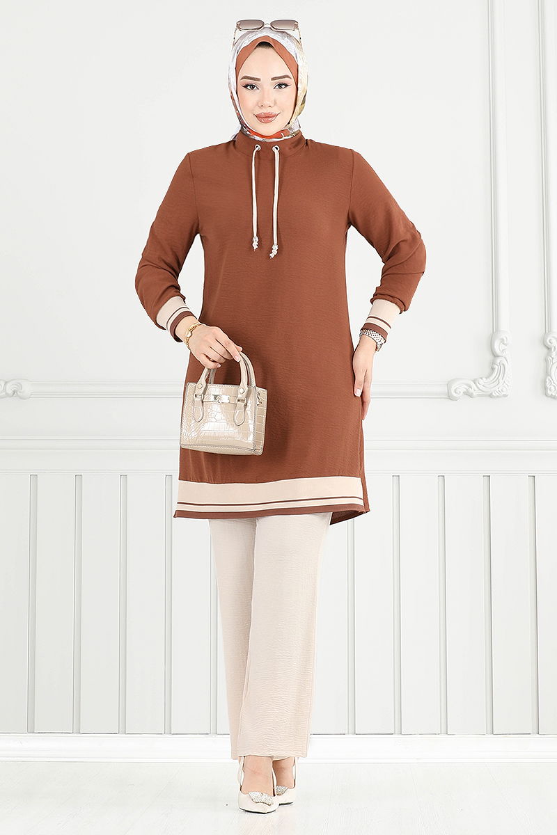 Product Feature : It is a new season hijab fashion product. It has a button that can be used from the back. The product has a Half Judge collar. The tunic has a side slash.. Unlined. Lacing details are accessories. There may be a tonal difference in the product due to concept photo shoots.